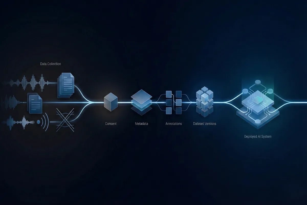 Across all three, multilingual dataset traceability adds another layer of complexity, as consent language, regional norms, and data expectations vary widely. Clear lineage becomes essential.
